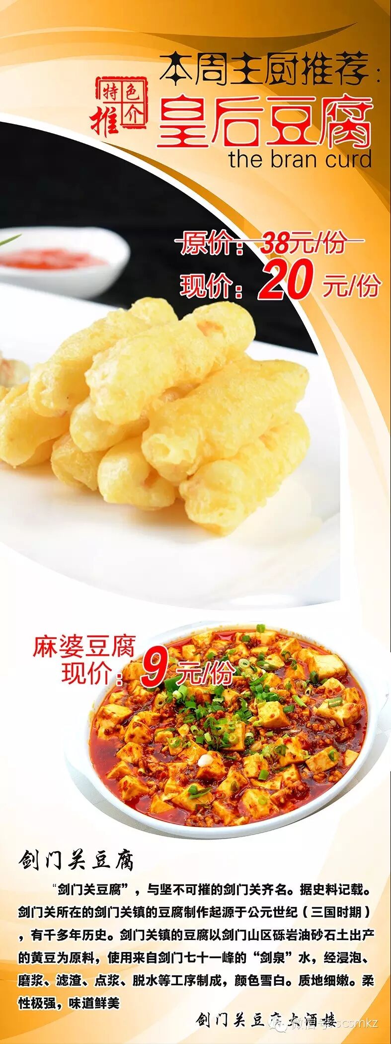 蜀门客栈每周将会推出一至两道主厨推荐菜品敬请关注!